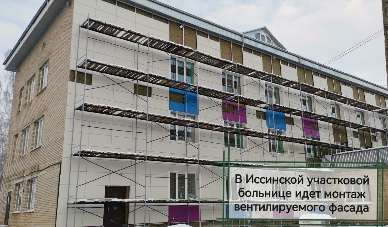 В Иссинской участковой больнице продолжаются работы по капитальному ремонту фасада терапевтического корпуса