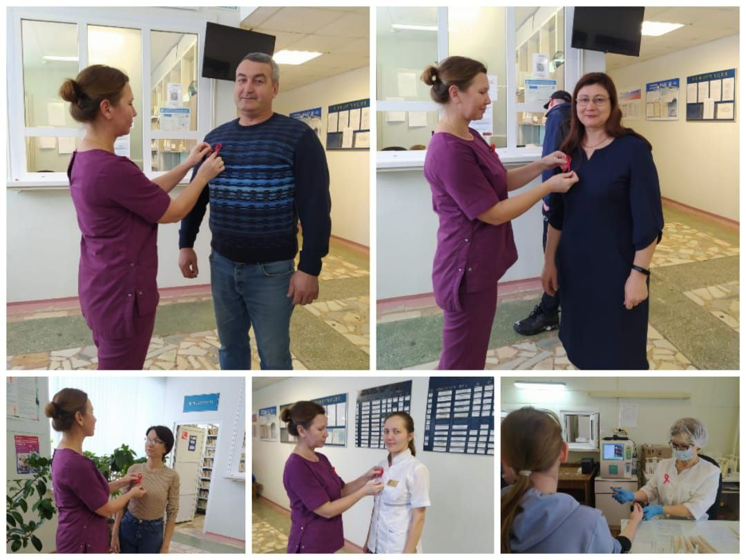 29 ноября в рамках Всемирного дня борьбы со СПИДом в поликлинике ГБУЗ "Иссинская участковая больница" прошла акция "Знай свой ВИЧ-статус". Всем желающим проведено экспресс-тестирование. Обследовно 22 человека. В знак солидарности медики и пациенты прикрепили к одежде красные ленточки.